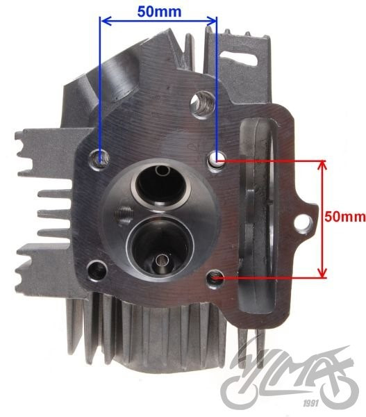 średnica dolotu: 27mm , rozstaw otworow 45mm M6 , średnica wydechu: 33mm, rozstaw 45mm m6 , długośc wałka 70mm , gwint świecy: M10x1.0 zawór ssący: długość: 66mm , średnica grzybka: 27 średnica trzonka: 5mm zawór wydechowy : długość 65mm średnica grzybka: 23mm średnica trzonka: 5mm średnica otworu na pokrywę : 72mm Korek regulacji zaworów do tej głowicy AY352349D |