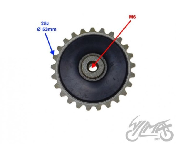 średnica koła: 53mm ilość zebow: 25 szerokość całkowita: 13mm gwint: M6 |
