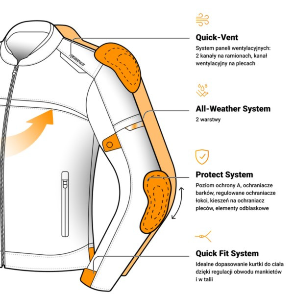 Wielosezonowa, motocyklowa kurtka miejska Ozone Neo została zaprojektowana dla motocyklistów ceniących wszechstronność i komfort podczas jazdy w różnych warunkach pogodowych. Idealna do jazdy miejskiej, sprawdza się zarówno w ciepłe, chłodne, jak i deszczowe dni. Wypinana podpinka ocieplająca oraz zaawansowany system wentylacji zapewniają optymalny komfort termiczny, a regulacje w ramionach, pasie i mankietach gwarantują idealne dopasowanie do sylwetki.