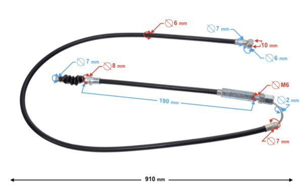 - długość całkowita linki: 910 mm