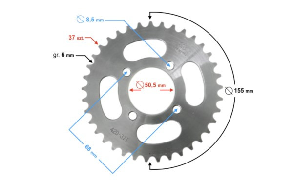 - średnica zewnętrzna zębatki: 155 mm
