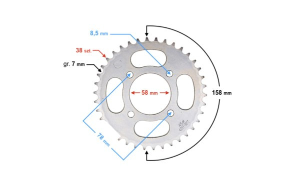 - średnica zewnętrzna zębatki: 158 mm