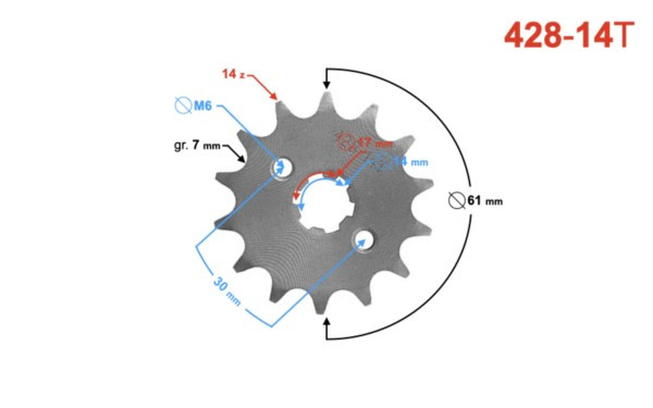 - średnica zewnętrzna zębatki: 61 mm